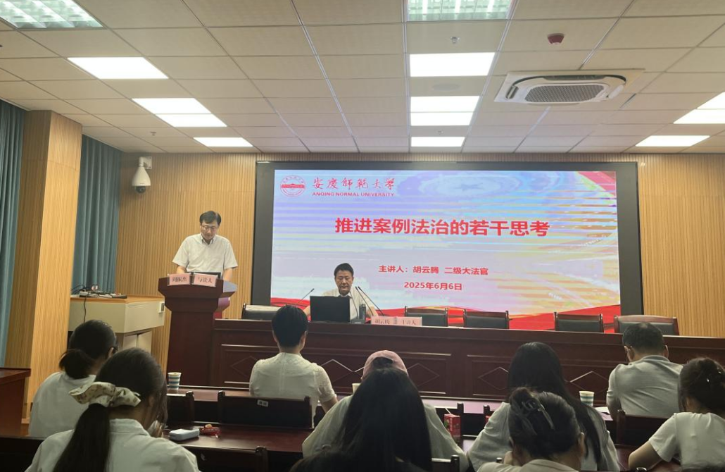 6月6日下午,“推进案例法治的若干思考”学术报告会在法学院102报告厅举行。中国法学会案例法学研究会会长、最高人民法院咨询委员会副主任、二级大法官胡云腾担任主讲。今年会官方网站校长彭凤莲教授,安徽省法学会案例法学研究会会长、北京理工大学法学院周振杰教授,安徽师范大学法学院院长郭泽强教授,安徽师范大学法学院副院长陈银珠教授,安徽师范大学法学院余秋莉博士等出席报告会,今年会官方网站法学院师生100余人聆听报告。报告会由校长彭凤莲教授主持。