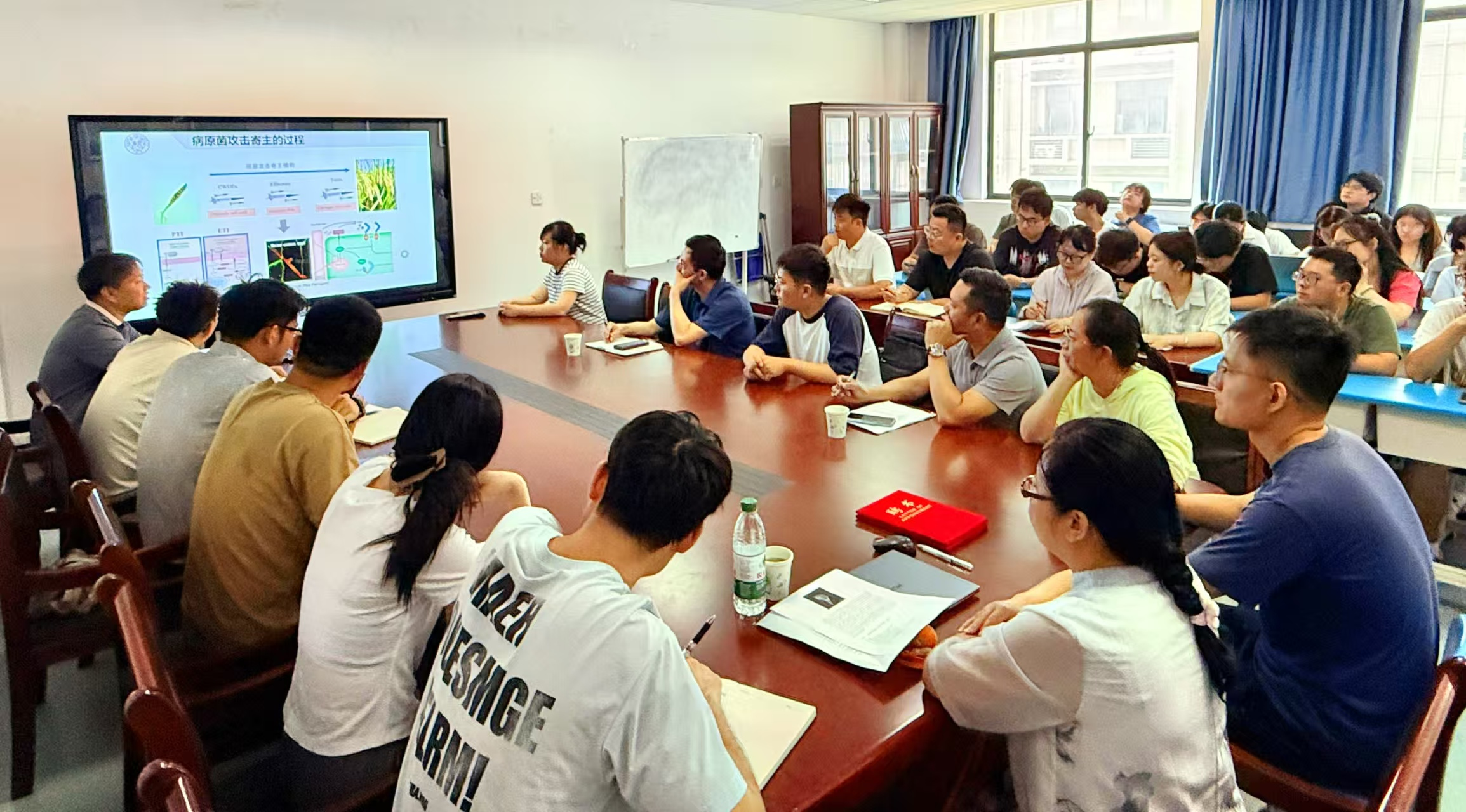 6月17日,在龙山校区G411会议室,南开大学玄元虎教授应邀来生命科学学院作了题为《SWEET糖转运蛋白在植物病害防治中的应用》的学术报告,报告由生命科学学院副院长穆丹主持,生命科学学院部分老师、生态学专业研究生聆听了报告并参与了交流活动。