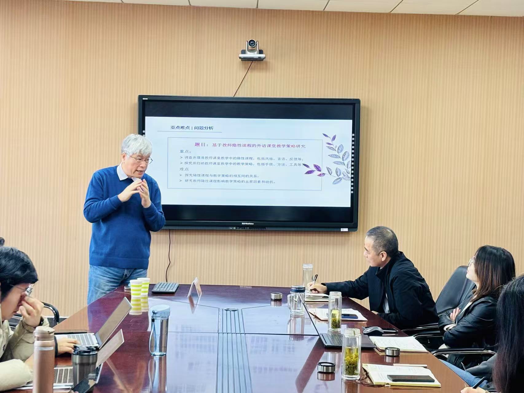 11月21日上午,外国语学院举办2026年度国家社科基金项目申报专家辅导会。上海外国语大学英语教授、博士生导师、《外语电化教学》副主编陈坚林受邀作题为“课题申请书常见问题及规避”的专题报告。学院国家社科基金项目申报人、学科方向带头人、学术骨干、硕士生导师及部分研究生参加了研讨交流。会议由院长江加宏主持。