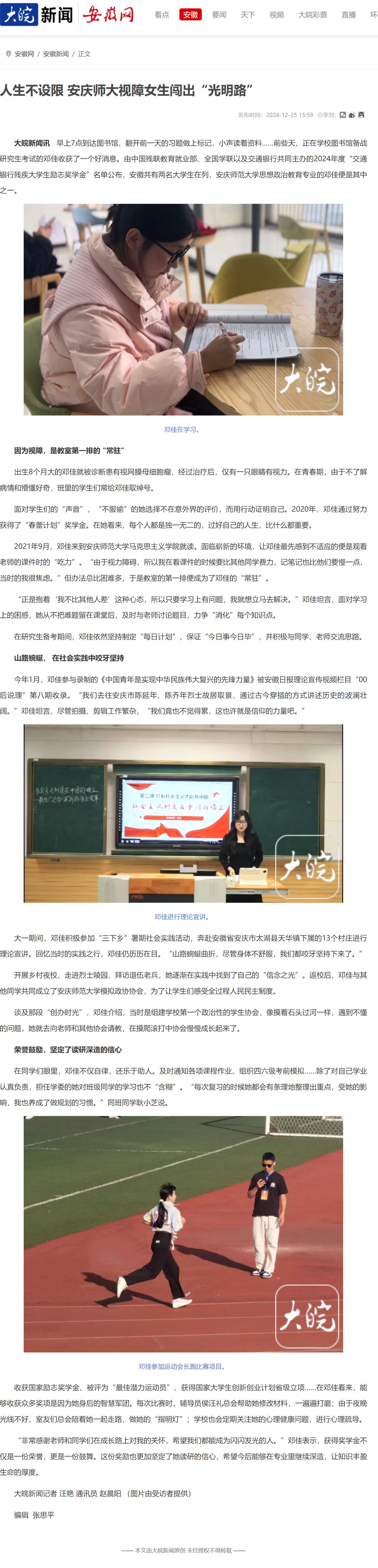 下一篇:新安晚报:收获国家励志奖学金,视障女大学生闯出“光明路”