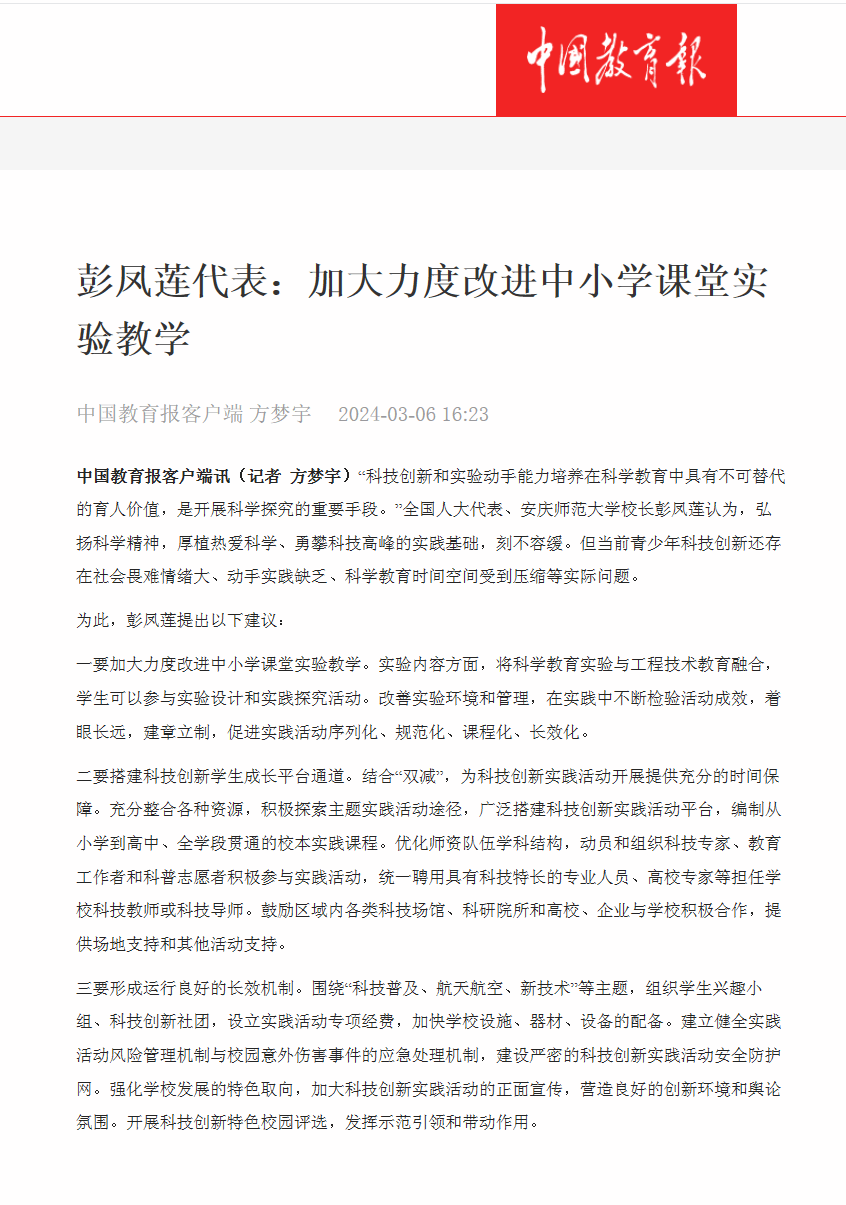 上一篇:人民教育:加强县域普通高中建设、改善乡村教育环境、解决教师跨学科考编受限问题……围绕基础教育扩优提质,代表委员们这样说