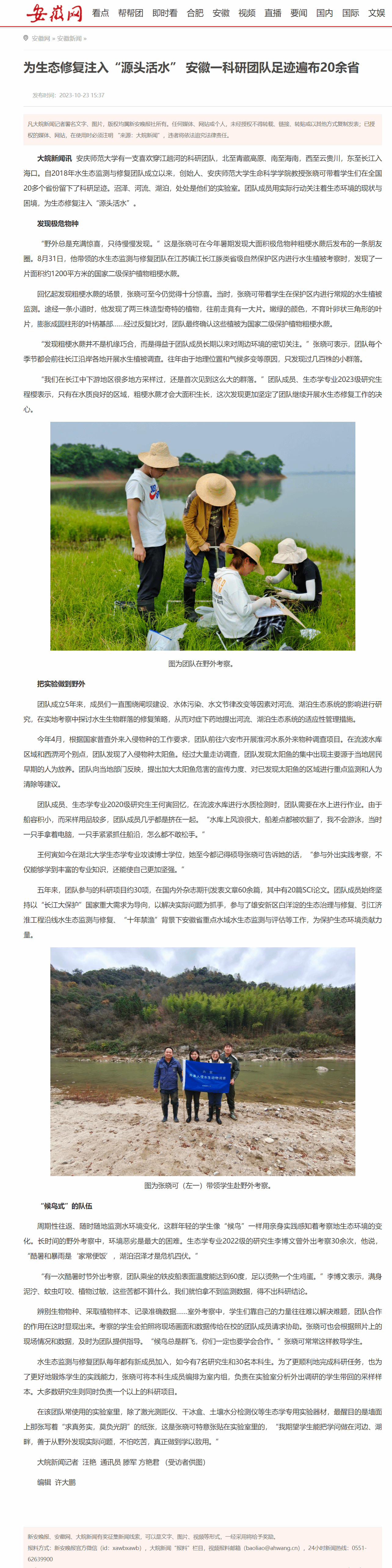 上一篇:新安晚报:沼泽河流湖泊都是他们的“实验室” 安庆师大科研团队用实际行动为生态修复贡献力量
