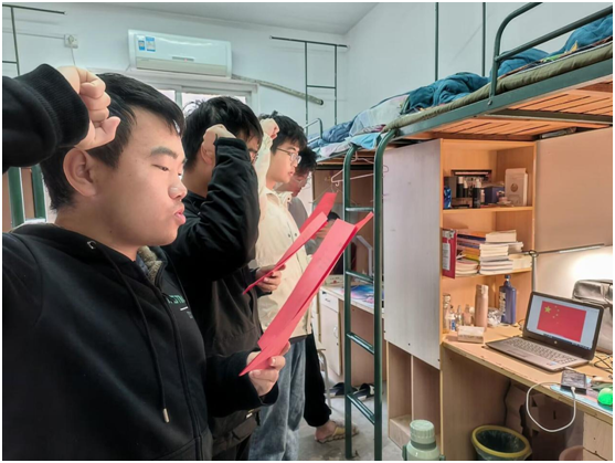 “我宣誓:忠于中华人民共和国宪法,维护宪法权威,履行法定职责,忠于祖国、忠于人民,为建设富强民主文明和谐美丽的社会主义现代化强国努力奋斗!”12月4日早上8:30,法学院全体学生以寝室为单位,在庄严的国歌声中,面对国旗一齐举起右手、紧握成拳,郑重宣誓。