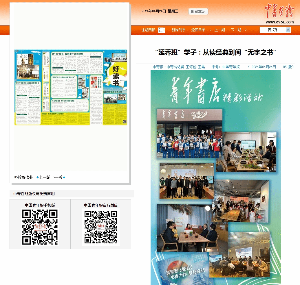 “平时,老师细致讲解书中问题,鼓励大家当堂提问、探讨、解决。当学生对一个问题产生多种见解时,老师会带领大家展开深层次交流,自由宽容的学习氛围让大家乐在其中。”王紫悦依然记得老师在最初建班时问学生的问题——“你为什么想进入‘延乔班’,你想成为一个什么样的人?”