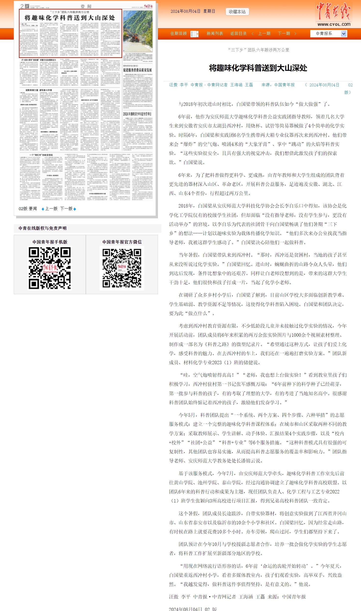 来源:【中国青年报】https://zqb.cyol.com/html/2024-08/04/nw.D110000zgqnb_20240804_1-02.htm