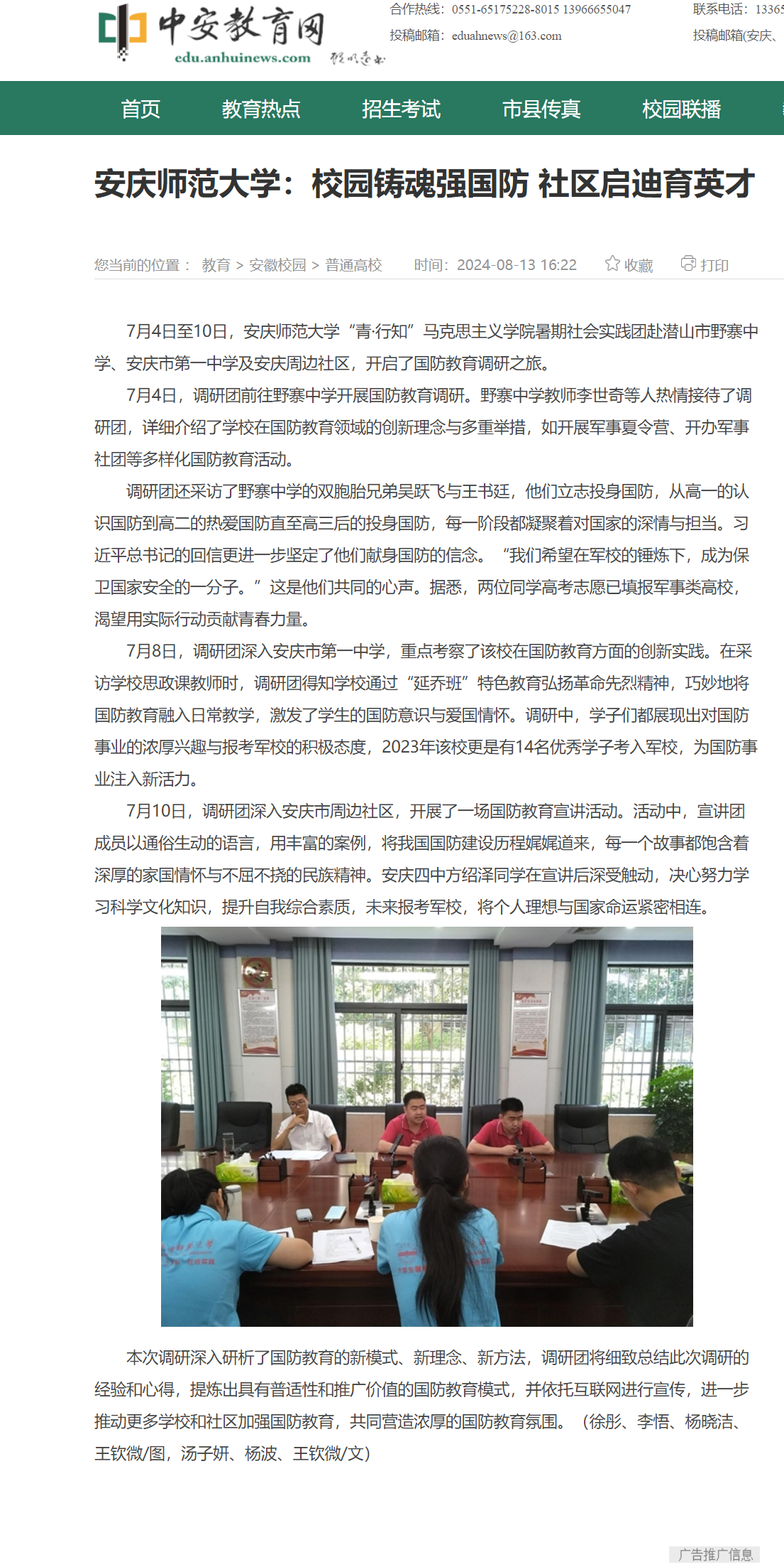 下一篇:安徽新闻网:安庆师大“青·行知” 实践团调研老年食堂