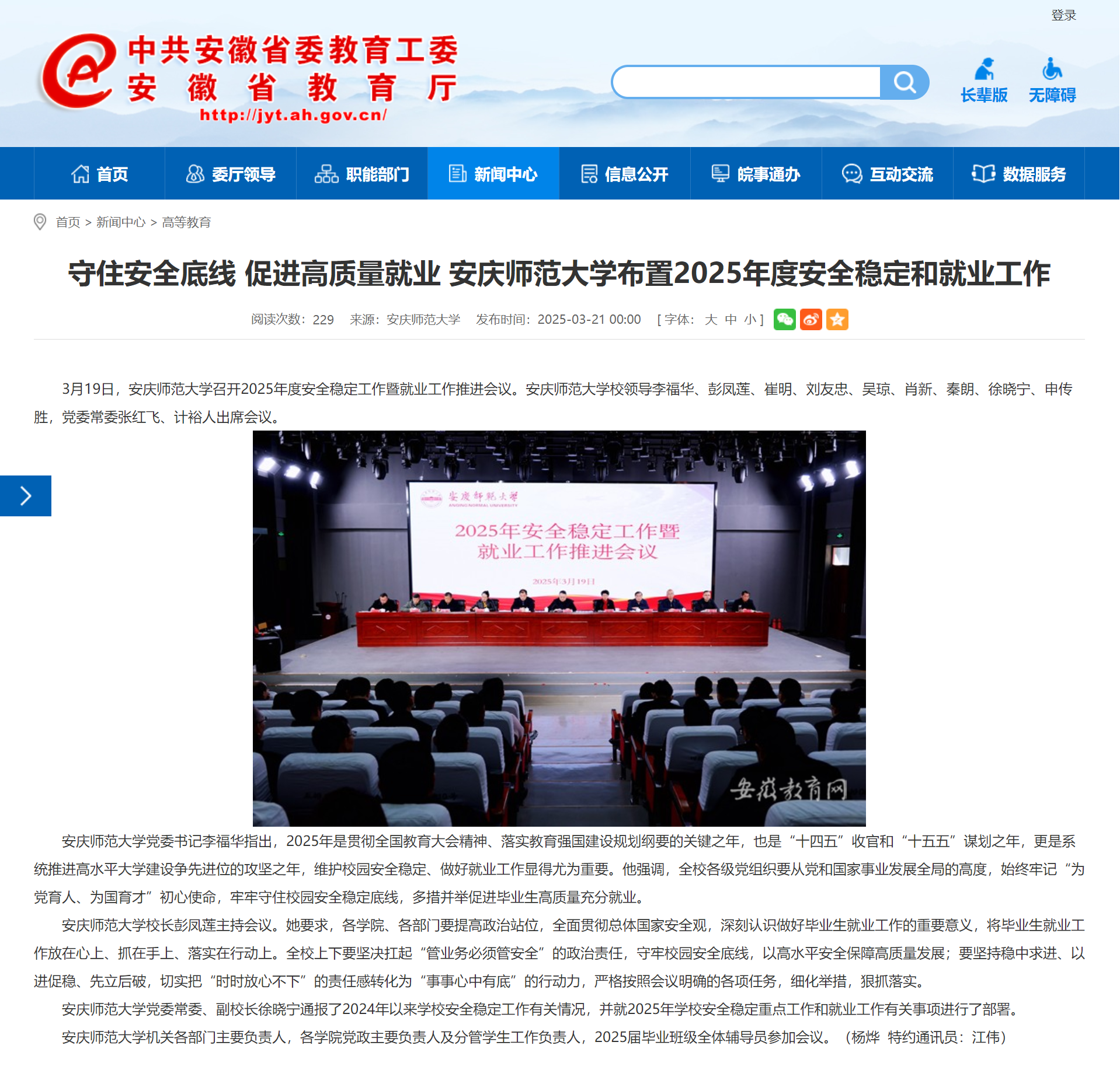 上一篇:安徽教育网:今年会官方网站党委传达学习习近平总书记在全国两会期间的重要讲话精神