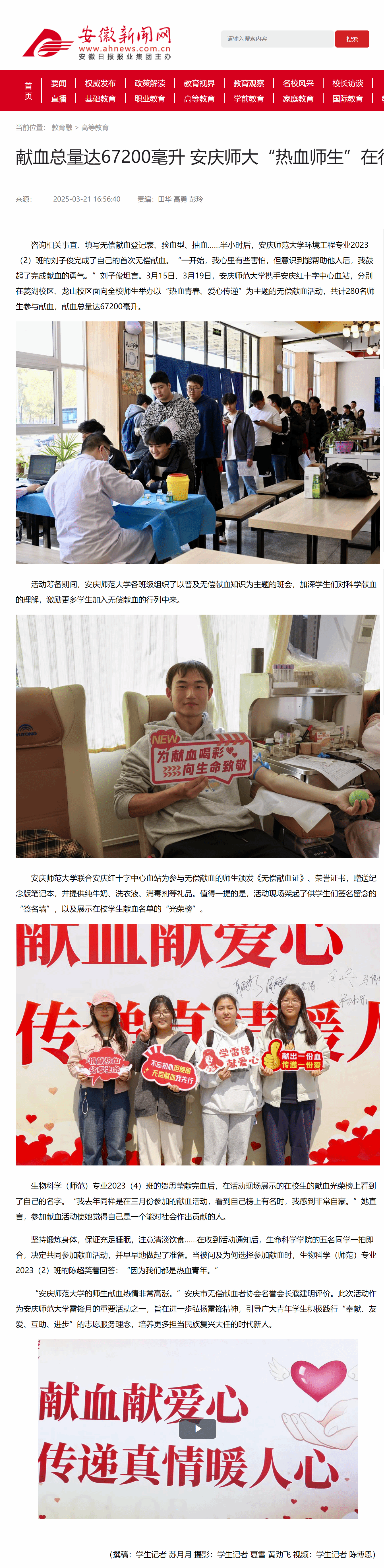 下一篇:中国教育在线:献血总量达67200毫升 安庆师大“热血师生”在行动
