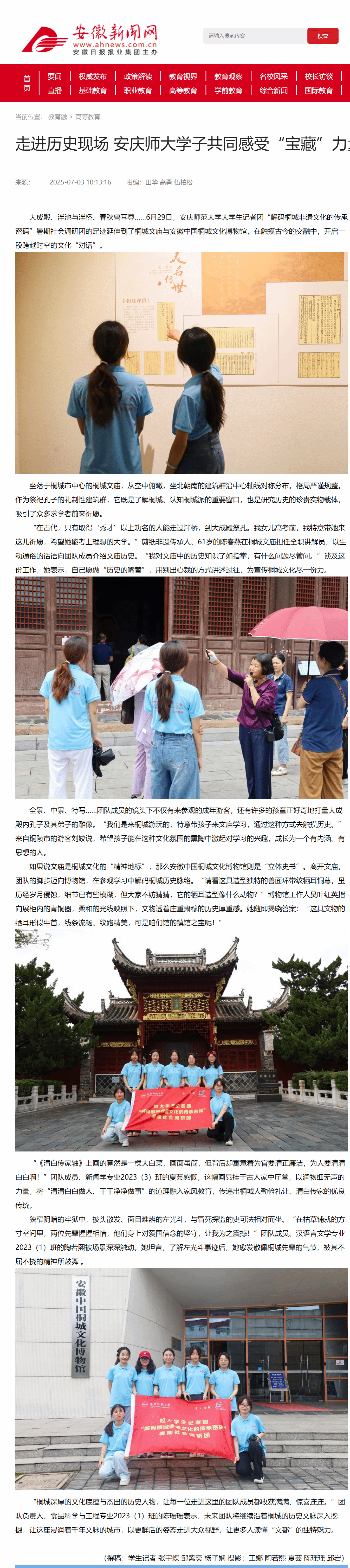 上一篇:安徽新闻网:体悟非遗魅力 安庆师大暑期社会实践学子探寻民间艺术