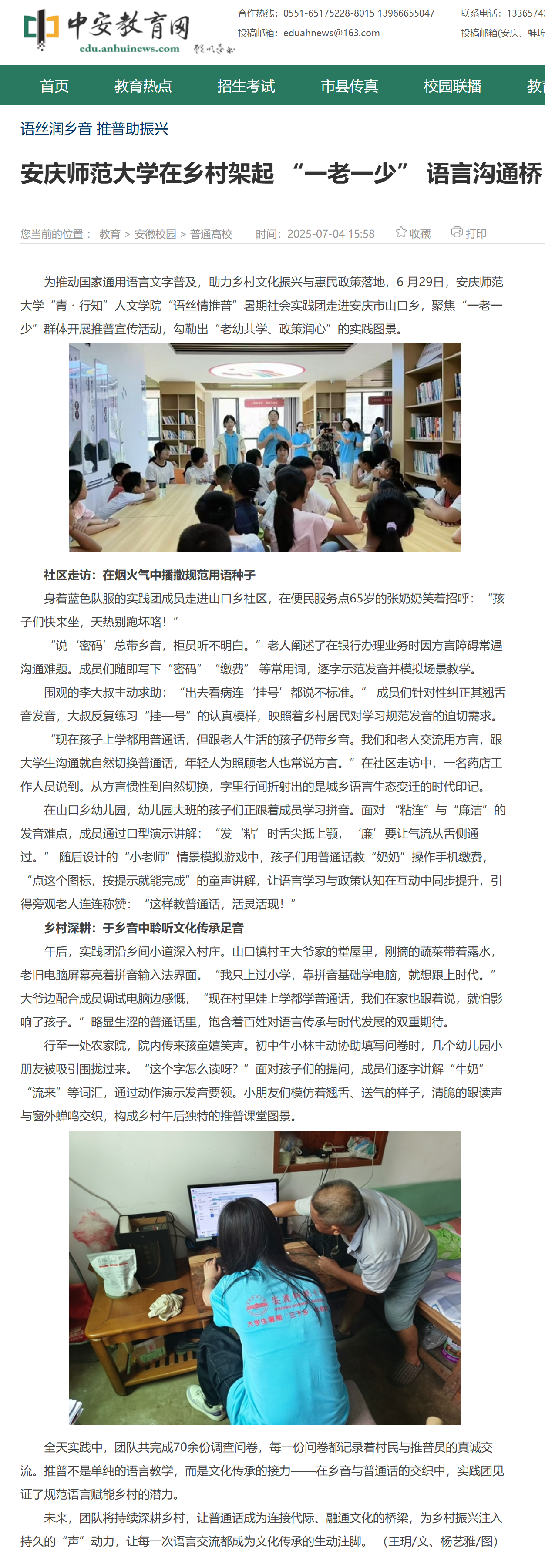 上一篇:中安教育网:安庆师大“音为爱”暑期“三下乡”实践活动在怀宁县腊树初中启航