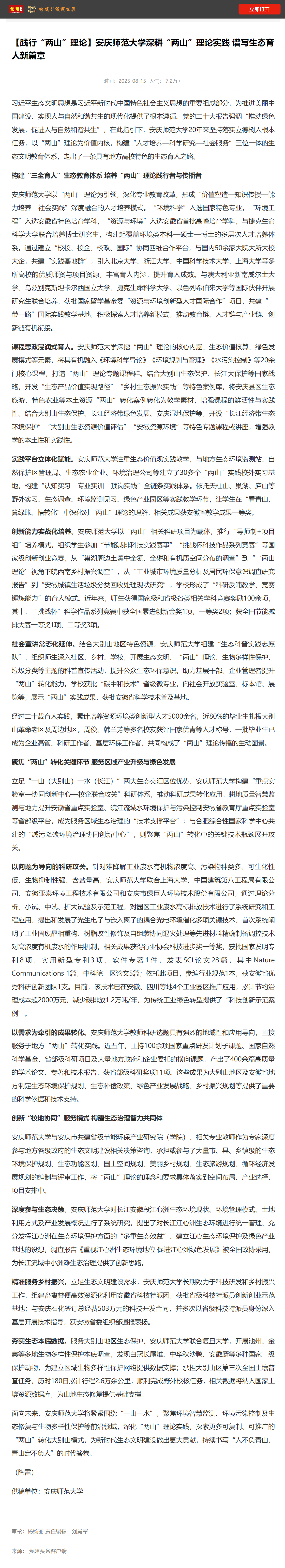 上一篇:安徽日报:“两山”理念提出20周年,安庆师大生态文明教育交出“成绩单”