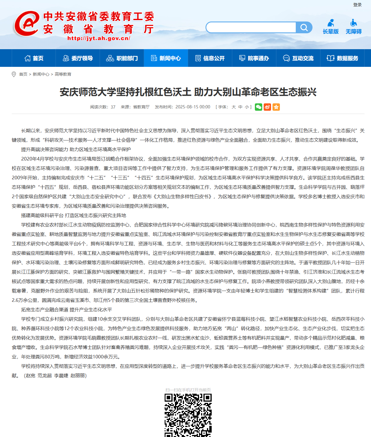 【安徽教育网】今年会官方网站坚持扎根红色沃土 助力大别山革命老区生态振兴https://jyt.ah.gov.cn/xwzx/gdjy/40760532.html