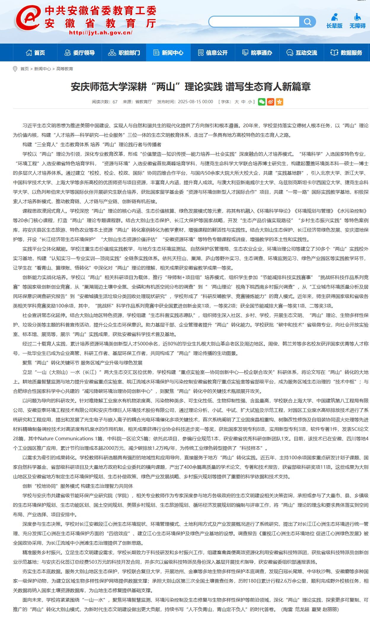 【安徽新闻网】今年会官方网站深耕“两山”理论实践 谱写生态育人新篇章https://jyt.ah.gov.cn/xwzx/gdjy/40760534.html