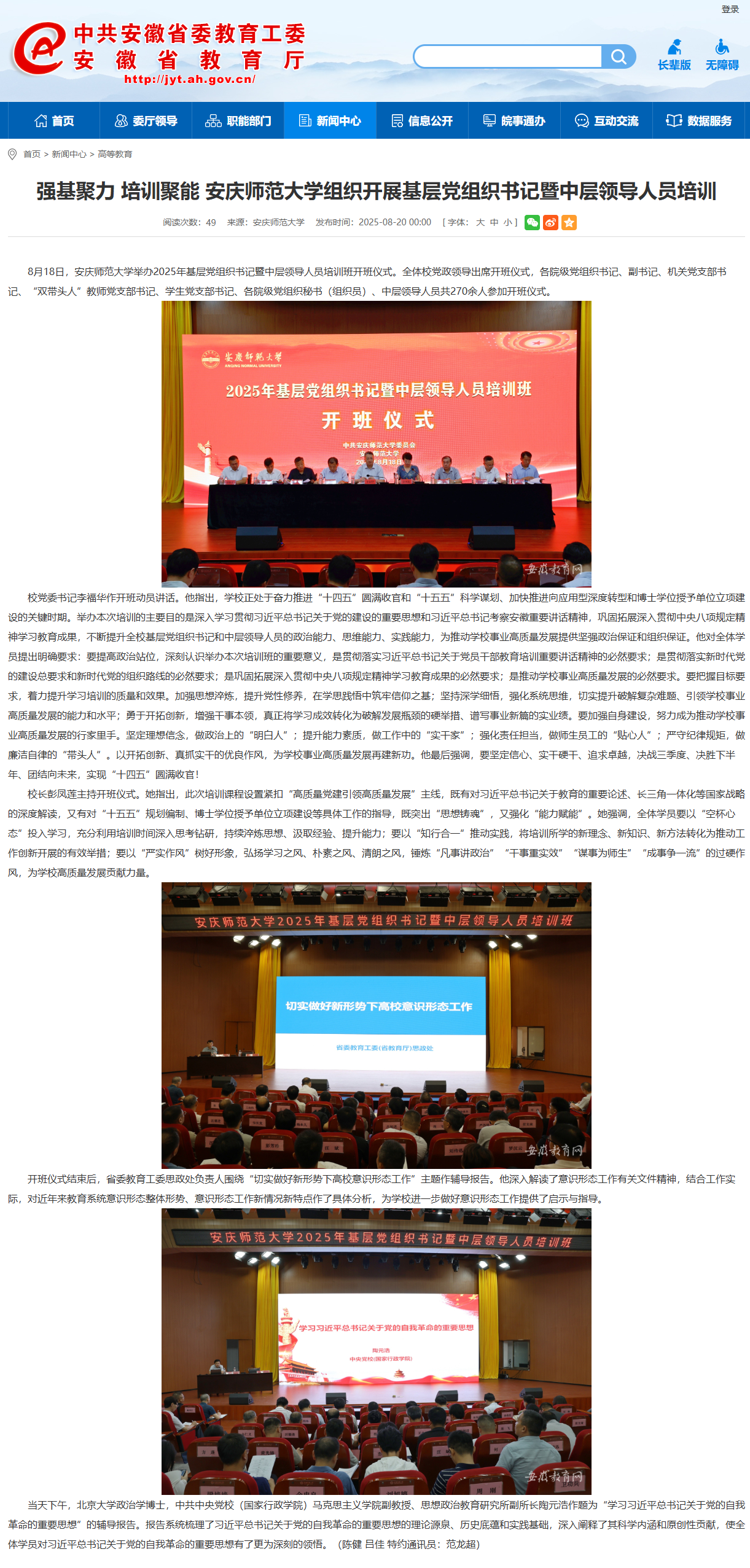 【安徽教育网】强基聚力 培训聚能 今年会官方网站组织开展基层党组织书记暨中层领导人员培训https://jyt.ah.gov.cn/xwzx/gdjy/40760822.html
