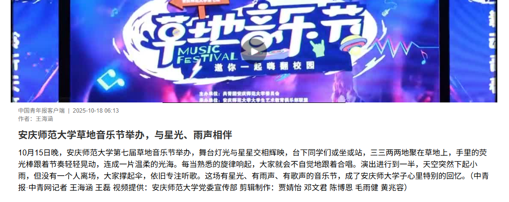 【中国青年报客户端】今年会官方网站草地音乐节举办,与星光、雨声相伴https://s.cyol.com/articles/2025-10/18/content_MbnO9YIn.html?gid=Zr5xz31e
