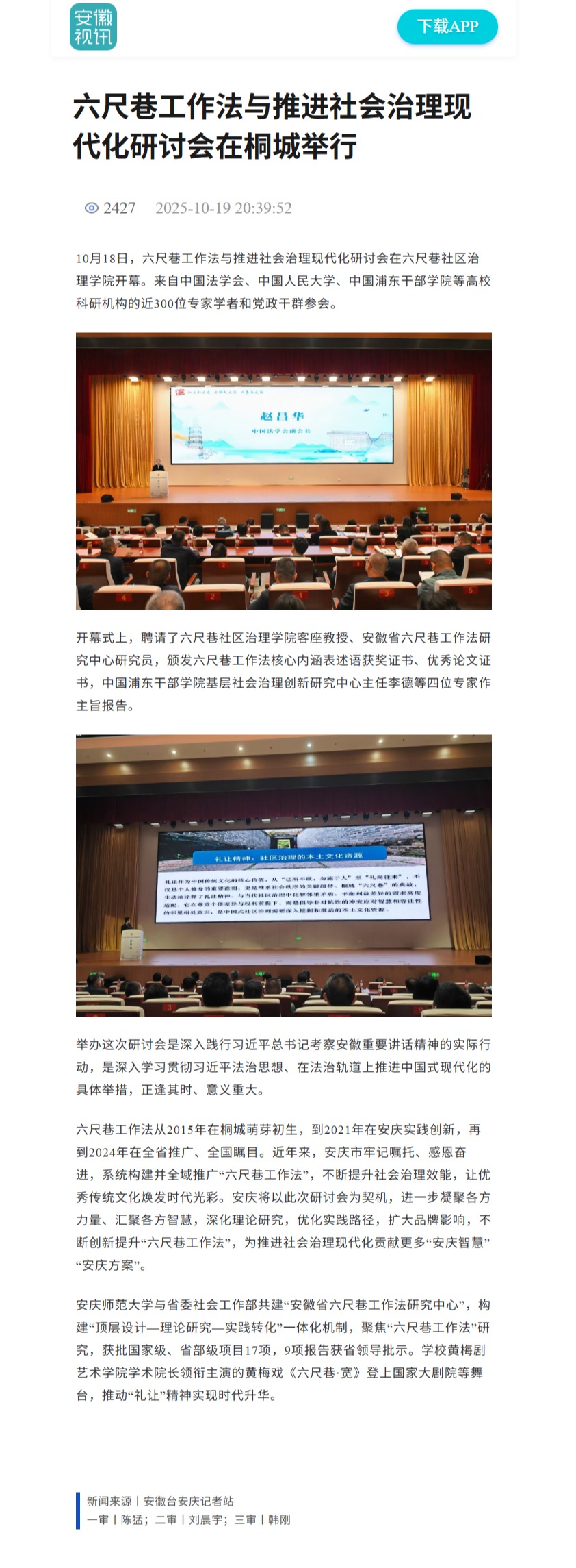 【安徽视讯】六尺巷工作法与推进社会治理现代化研讨会在桐城举行https://console.ahsx.ahtv.cn/web/cms/rmt0087_html/1/1sy/tt/215830.shtml?share=true&type=1&articleid=215830