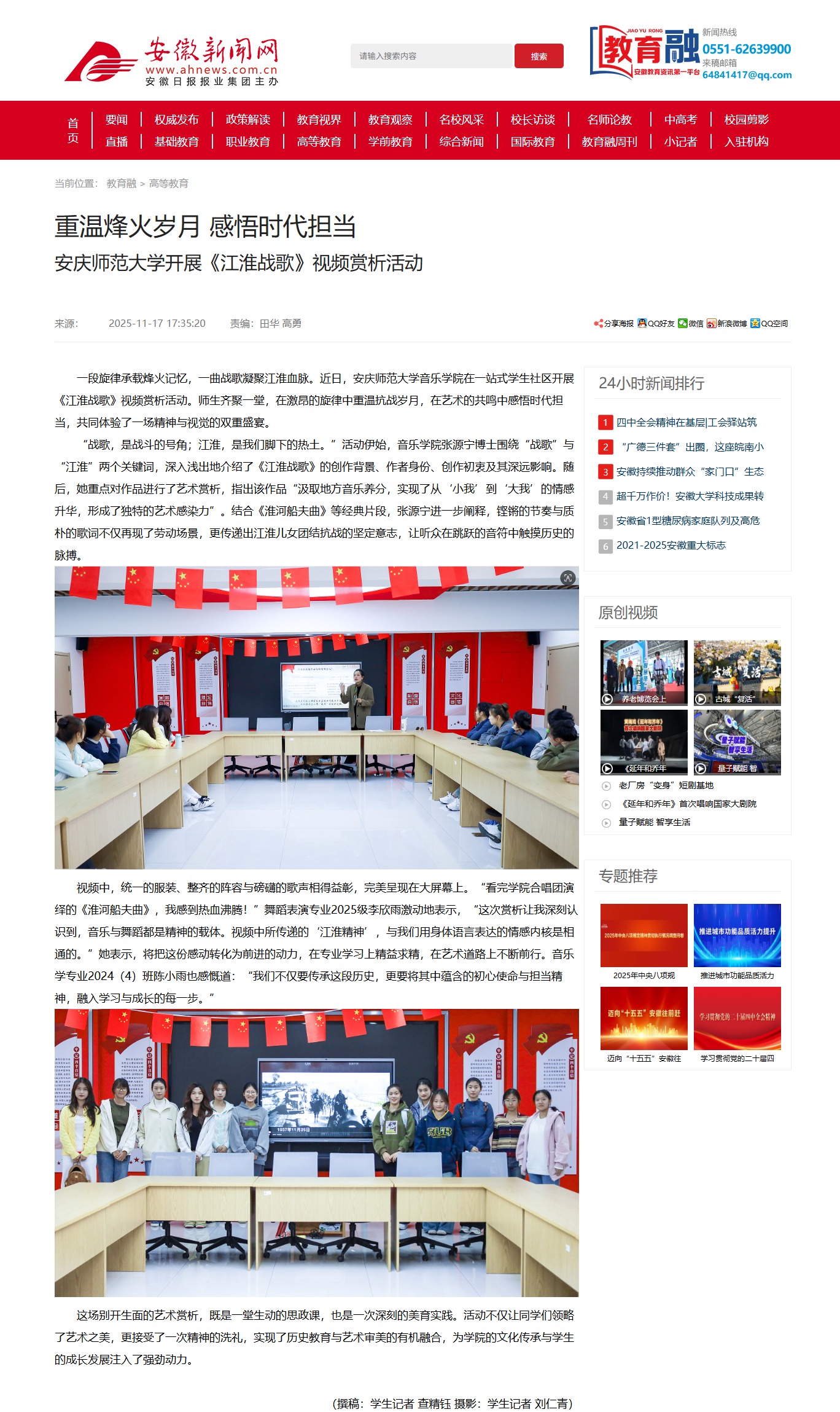 【安徽新闻网】重温烽火岁月 感悟时代担当 今年会官方网站开展《江淮战歌》视频赏析活动http://xxt.ahnews.com.cn/news/2025/11/17/c_42399.htm