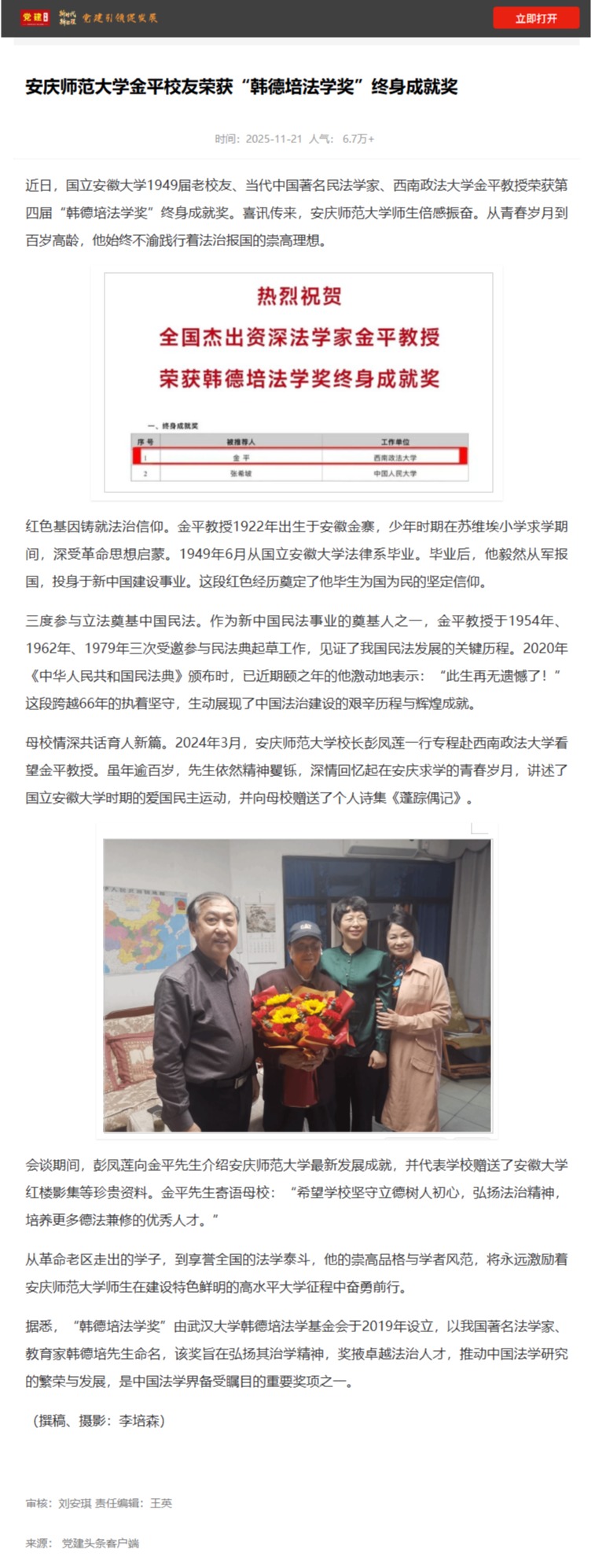 【党建头条】今年会官方网站金平校友荣获“韩德培法学奖”终身成就奖https://www.djttw.com/m/view.php?aid=1038385