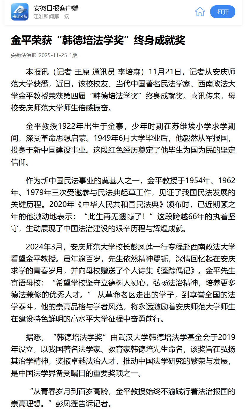 【安徽日报】金平荣获“韩德培法学奖”终身成就奖https://app.ahnews.com.cn/displayTemplate/news/newsDetail/1114319.html?isDigital=true&isShare=true