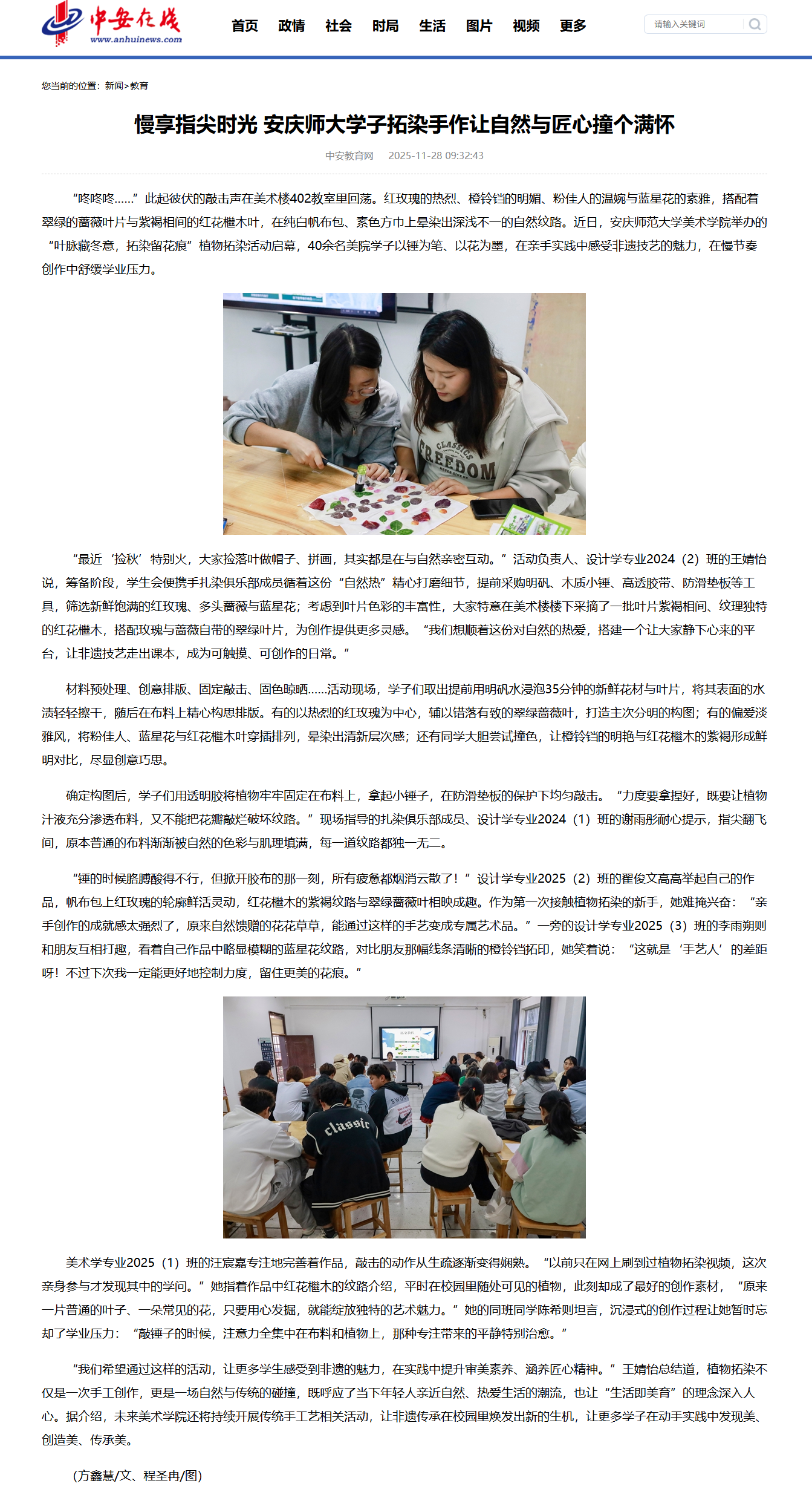 【中安教育网】慢享指尖时光 安庆师大学子拓染手作让自然与匠心撞个满怀http://api.app.anhuinews.com/pc/content/8941269.html