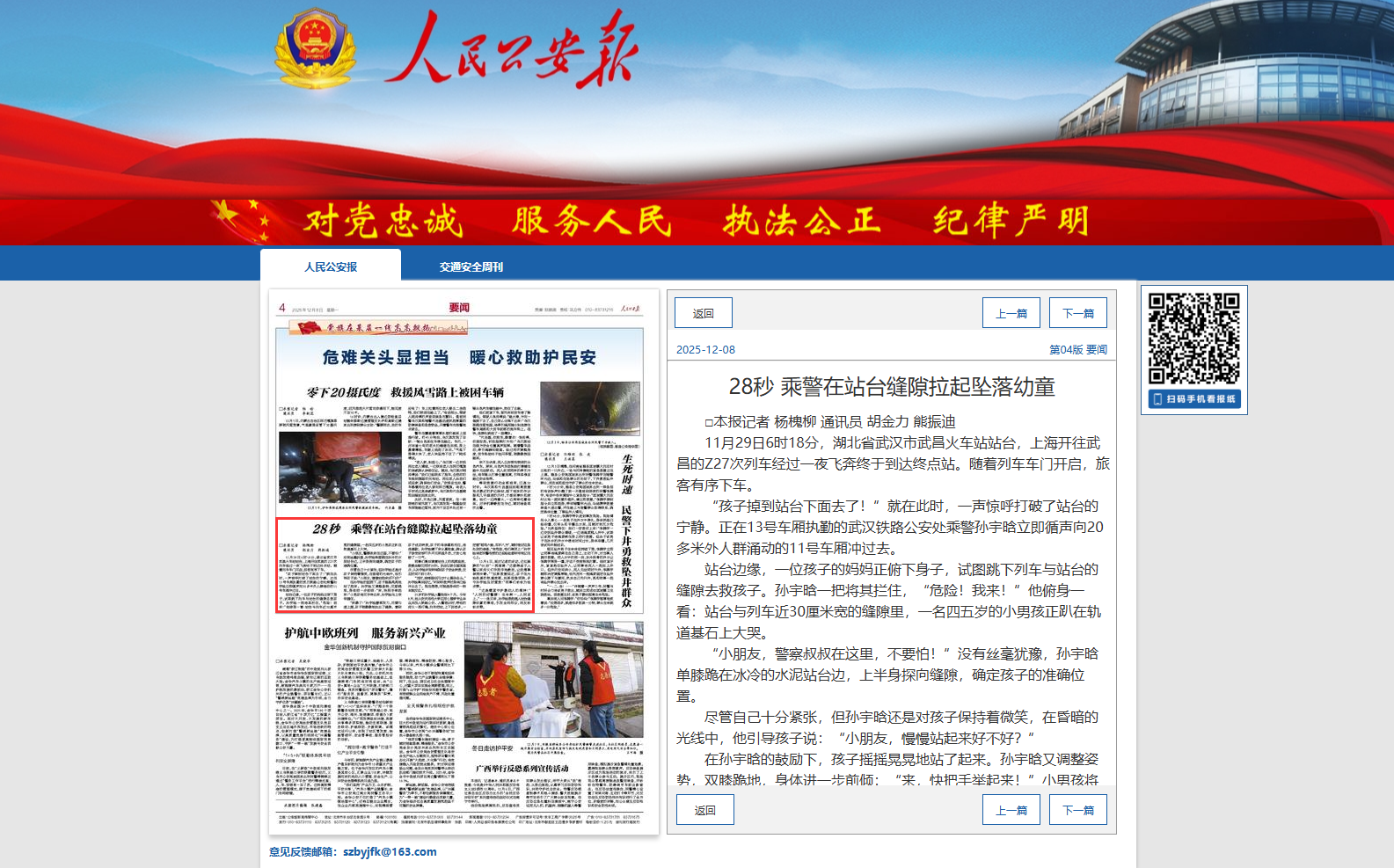 “这是藏蓝守护最动人的模样!”“人民的好警察!生命第一,人民至上。”……连日来,孙宇晗救起落入站台缝隙幼童的事迹,引发全网热议,网友纷纷点赞。