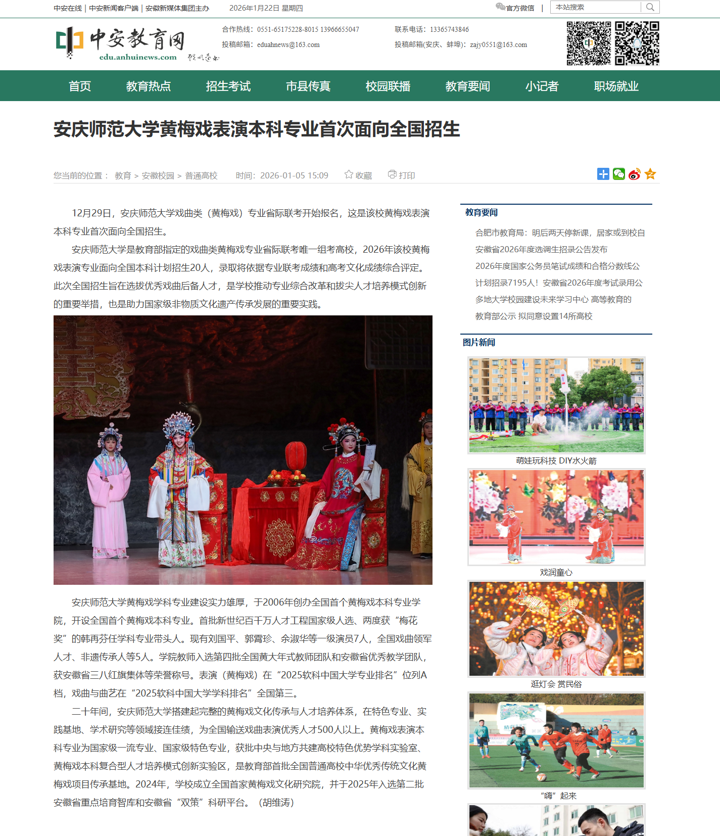 【中安教育网】今年会官方网站黄梅戏表演本科专业首次面向全国招生http://edu.anhuinews.com/ahxy/ptgx/202601/t20260104_9014463.html