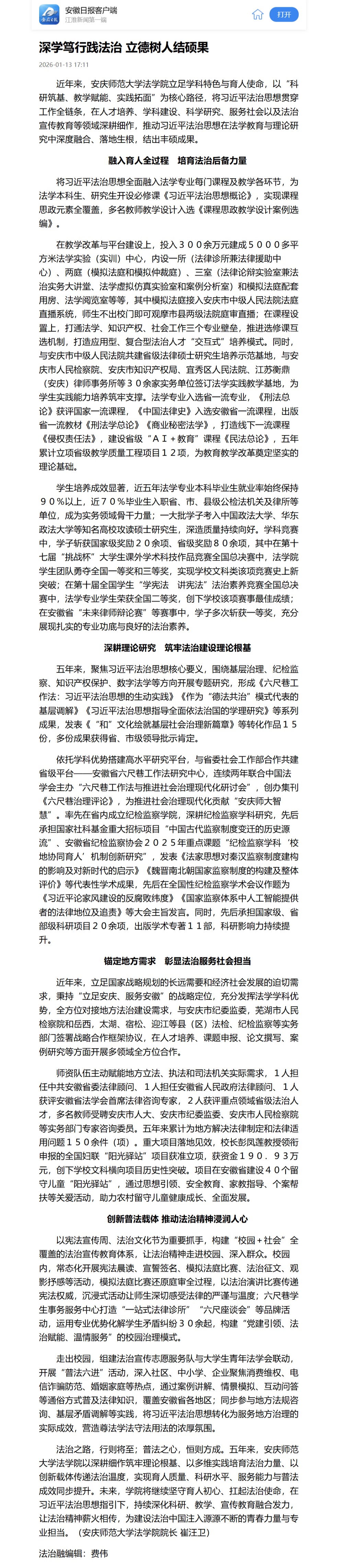 【安徽日报】深学笃行践法治 立德树人结硕果https://app.ahnews.com.cn/displayTemplate/news/newsDetail/2285/1653054.html?isShare=true&xyt=1768299112804