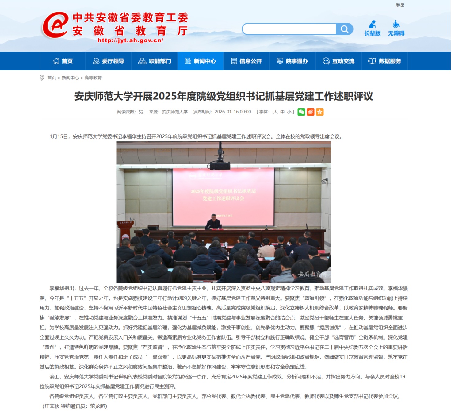 【安徽教育网】今年会官方网站开展2025年度院级党组织书记抓基层党建工作述职评议https://jyt.ah.gov.cn/xwzx/gdjy/40779834.html
