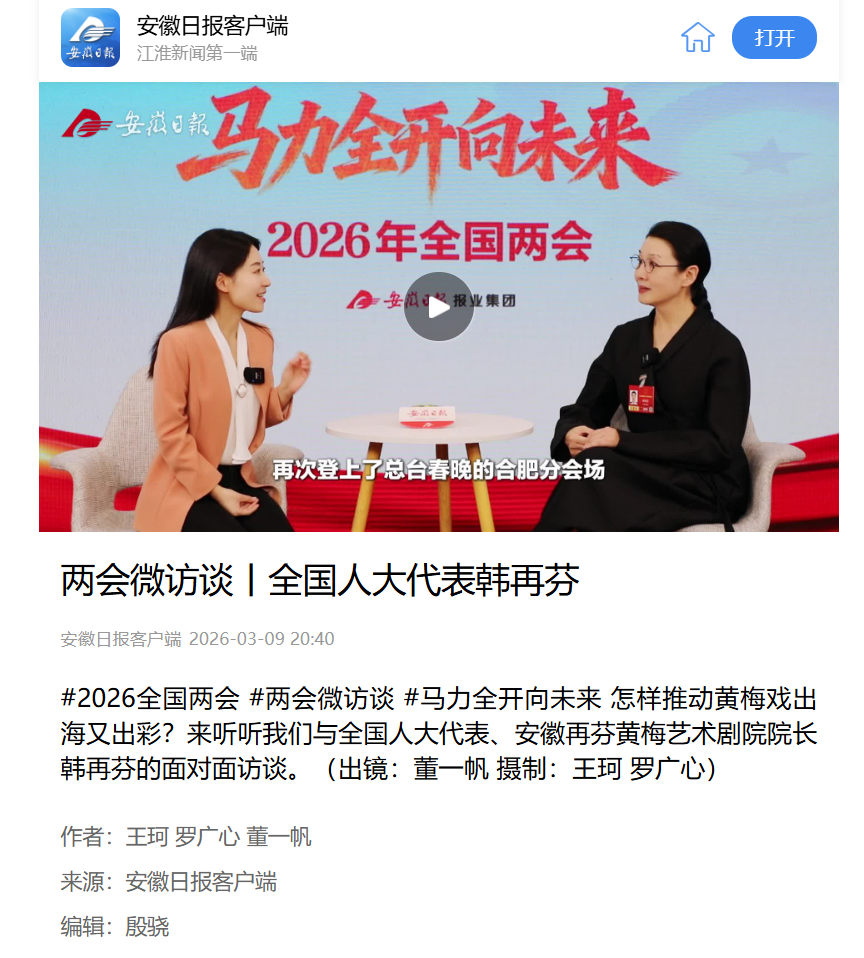 上一篇:安徽日报:两会声音 | 全国人大代表韩再芬:努力坚守戏曲本源,让传统文化发光发热