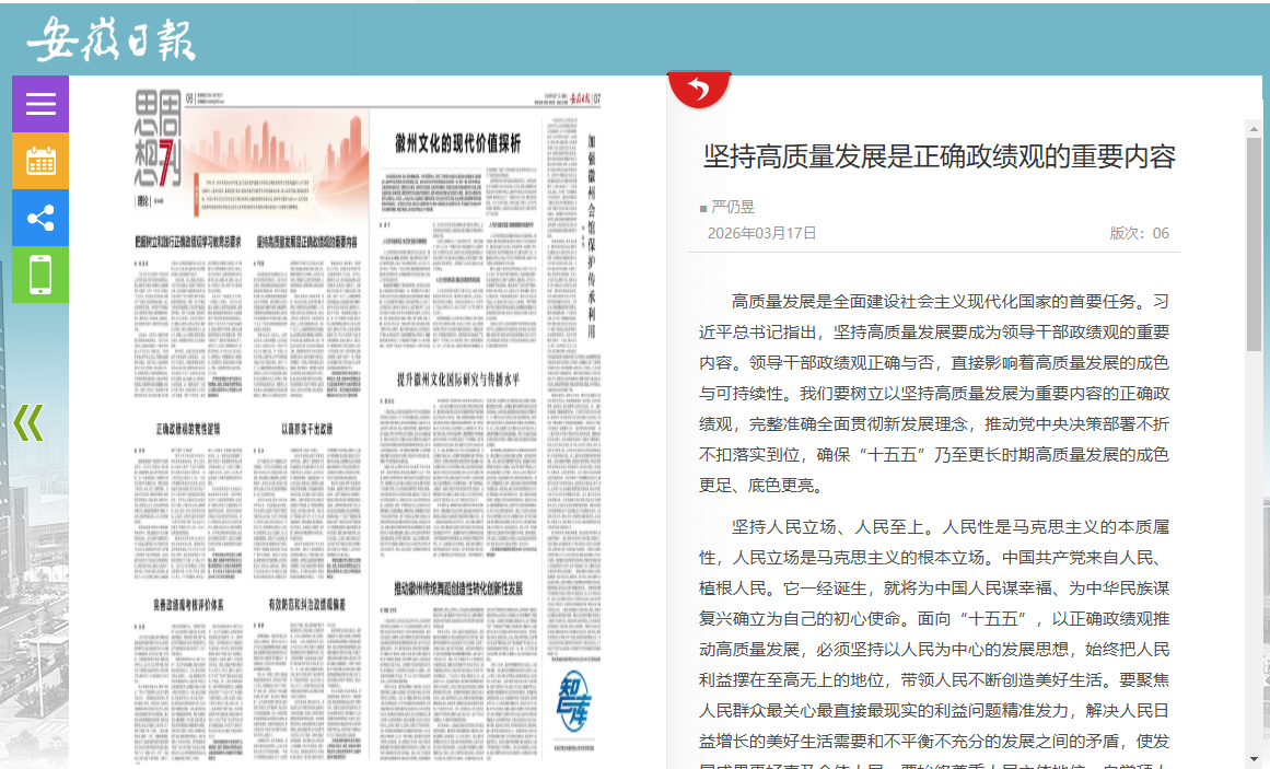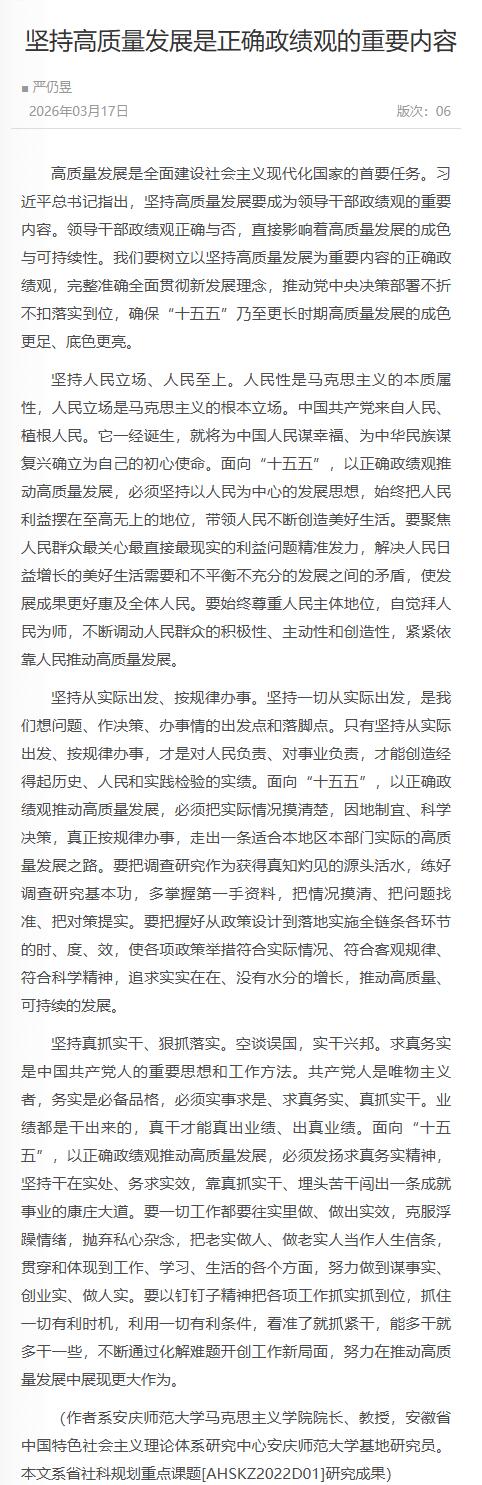 来源:【安徽日报】坚持高质量发展是正确政绩观的重要内容https://szb.ahnews.com.cn/ahrb/layout/202603/17/node_06.html#c1129324