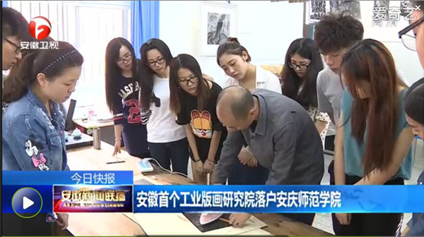 6月14日,《安徽新闻联播》在“今日快报”版块播出安徽首个工业版画研究院落户今年会的新闻。