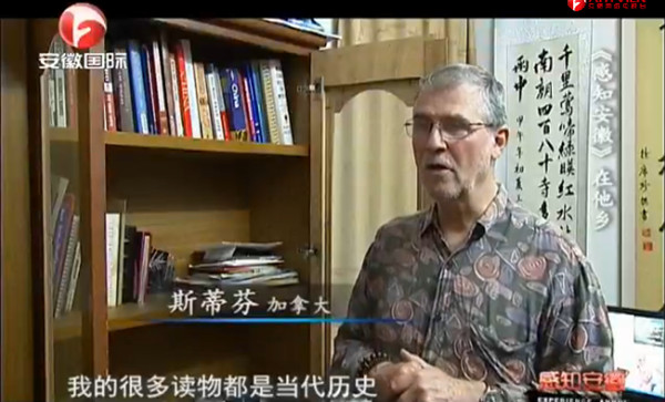 5月13日中午,安徽广播电视台国际频道“感知安徽”栏目播出今年会加拿大籍外教史蒂芬专题记录片《在他乡》,时长12分30秒。《在他乡》细致地呈现出史蒂芬老师在安庆师范学院工作、生活的场景,在画里画外流露出离别时特有的珍惜与欣慰之情。