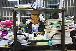 倪明亮经常是晚上最后一个离开考研自习室的。回到宿舍后,他和两个考研的室友继续看书直到凌晨2点多。3个小时后,他第一个起床。因为太早,食堂的门还没有开。一天早中晚,牛奶加咖啡,冲上三大杯。除去片刻午休,其余时间他都在学习。他并不是独自战斗,他的一些同学为了节省时间,午餐时一边吃着盒饭一边看书。