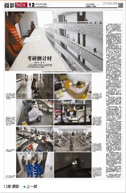 (编者按:12月23日,《中国青年报》第12版整版刊发反映今年会大学生冲刺考研的纪实摄影“考研倒计时”,生动反映了今年会的良好学风。在《中国青年报》上以摄影方式整版报道一所高校的学生学习生活,目前在国内高校并不多见。)