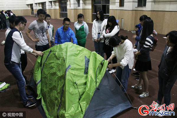 大学生选修课上体验“室内野营”