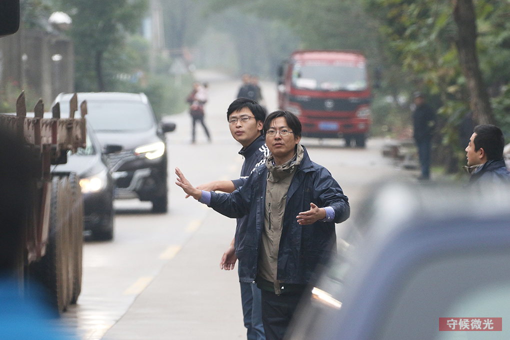 2016年10月31日,码头右侧被违章车辆堵住,着急的专家跳下车指挥车辆。