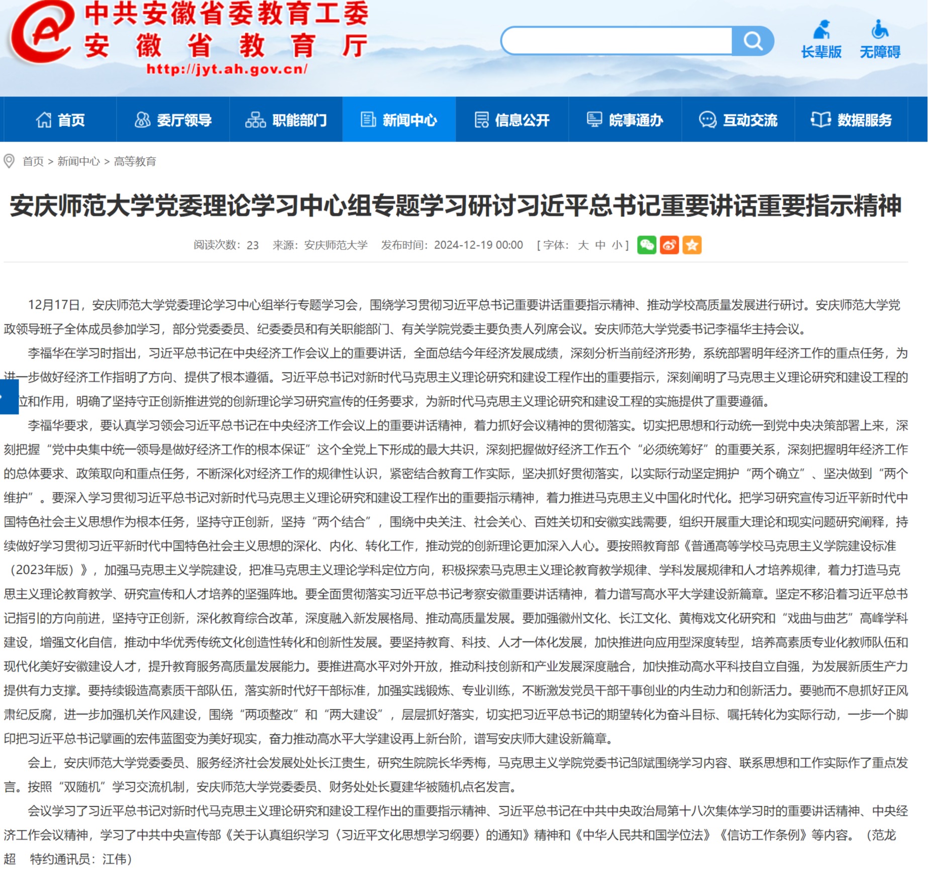 上一篇:安徽教育网:学习贯彻习近平总书记考察安徽重要讲话精神“社科名家大巡讲”走进今年会官方网站